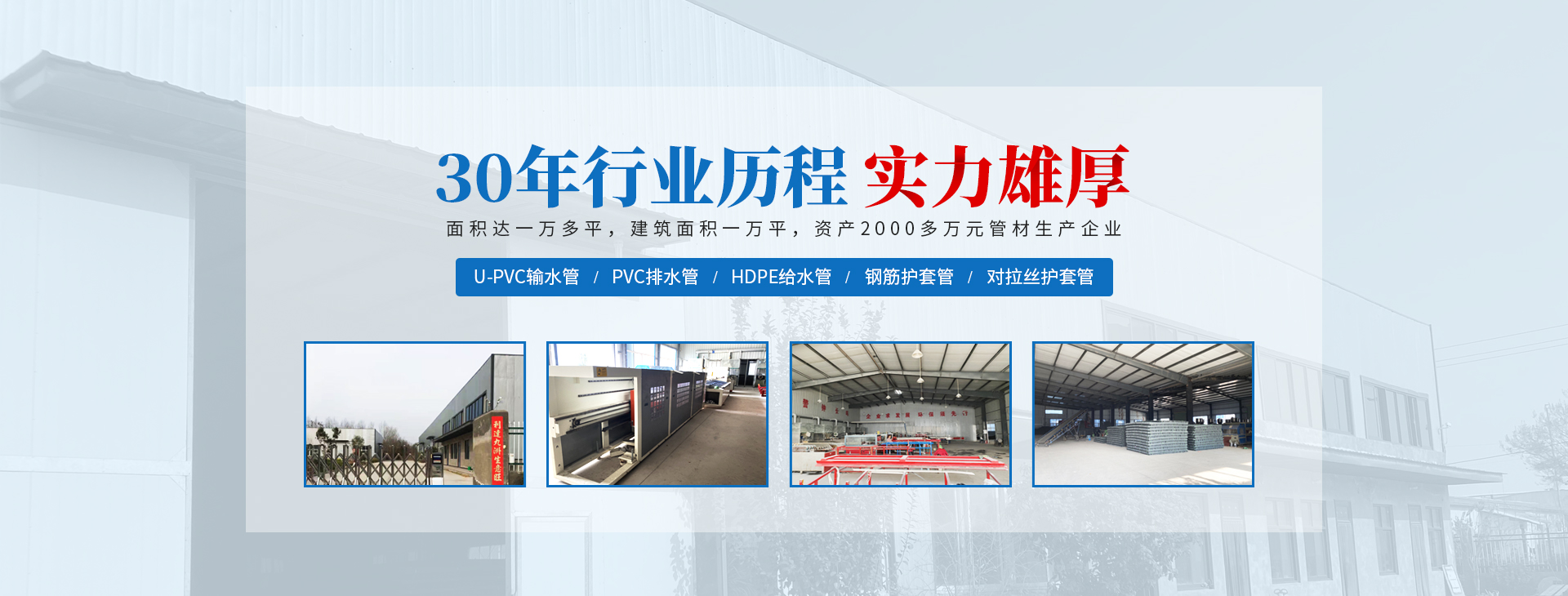 安陽(yáng)市祝豐塑化有限公司坐落在滑縣工業(yè)園區(qū),東臨大廣高速,西臨京珠高速,是鄭州、鶴壁、安陽(yáng)、濮陽(yáng)四個(gè)城市的輸紐,交通便利、環(huán)境優(yōu)美。 公司始建于八十年代,經(jīng)過(guò)二十余年的艱辛創(chuàng)業(yè),規(guī)模不斷壯大,由十多萬(wàn)元資產(chǎn)的小廠,發(fā)展到現(xiàn)占地面積達(dá)一萬(wàn)多平,建筑面積一萬(wàn)平,資產(chǎn)2000多萬(wàn)元管材生產(chǎn)企業(yè)。公司生產(chǎn)PVC-U、PVC排水管、HDPE給水管、鋼筋護(hù)套管管道通訊管材等產(chǎn)品,廣泛用于農(nóng)田節(jié)水、高山引水、人畜用水、建筑、電力通訊等多種用途,品種齊全。為了滿足用戶需求,可承攬各種給水、節(jié)水、灌溉工程。“祝豐塑化”憑借強(qiáng)勁的實(shí)力,優(yōu)良的管理水平。“以質(zhì)量求生存,以信譽(yù)求發(fā)展”的原則全力以赴和大家共同塑造美好未來(lái)。..